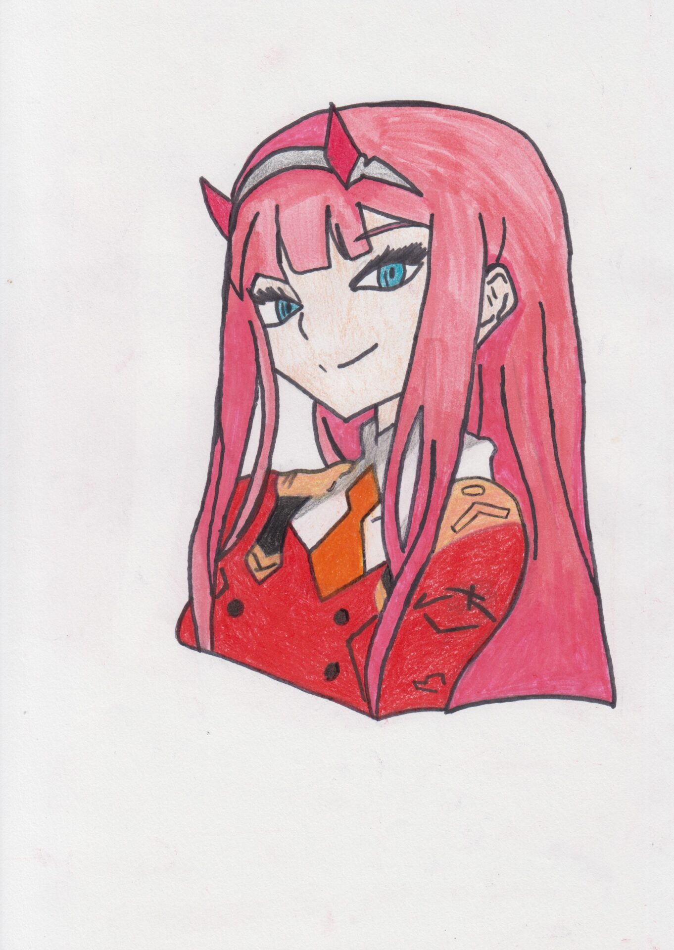Rysunek a4 przedstawia postać z anime – zero two. Do narysowania tego zainspirował mnie wielki fan anime i mój przyjaciel.