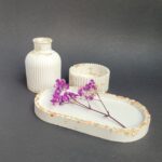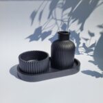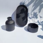 Odkryj wyjątkowy zestaw dekoracyjny stworzony ręcznie z gipsu polimerowego, który doda Twojemu wnętrzu elegancji i charakteru. Ten niepowtarzalny komplet w głębokim, czarnym kolorze składa się z owalnej podstawki, wazonika oraz uniwersalnej osłonki, która może pełnić funkcję stylowej świeczki lub eleganckiego pojemnika na biżuterię. Idealny na prezent lub jako wyjątkowy element dekoracyjny w Twoim domu. Każdy element został starannie wykonany z dbałością o detale, aby wprowadzić do Twojej przestrzeni odrobinę luksusu i nowoczesnego designu. Dodaj do koszyka już teraz i stwórz niepowtarzalną atmosferę w swoim wnętrzu!