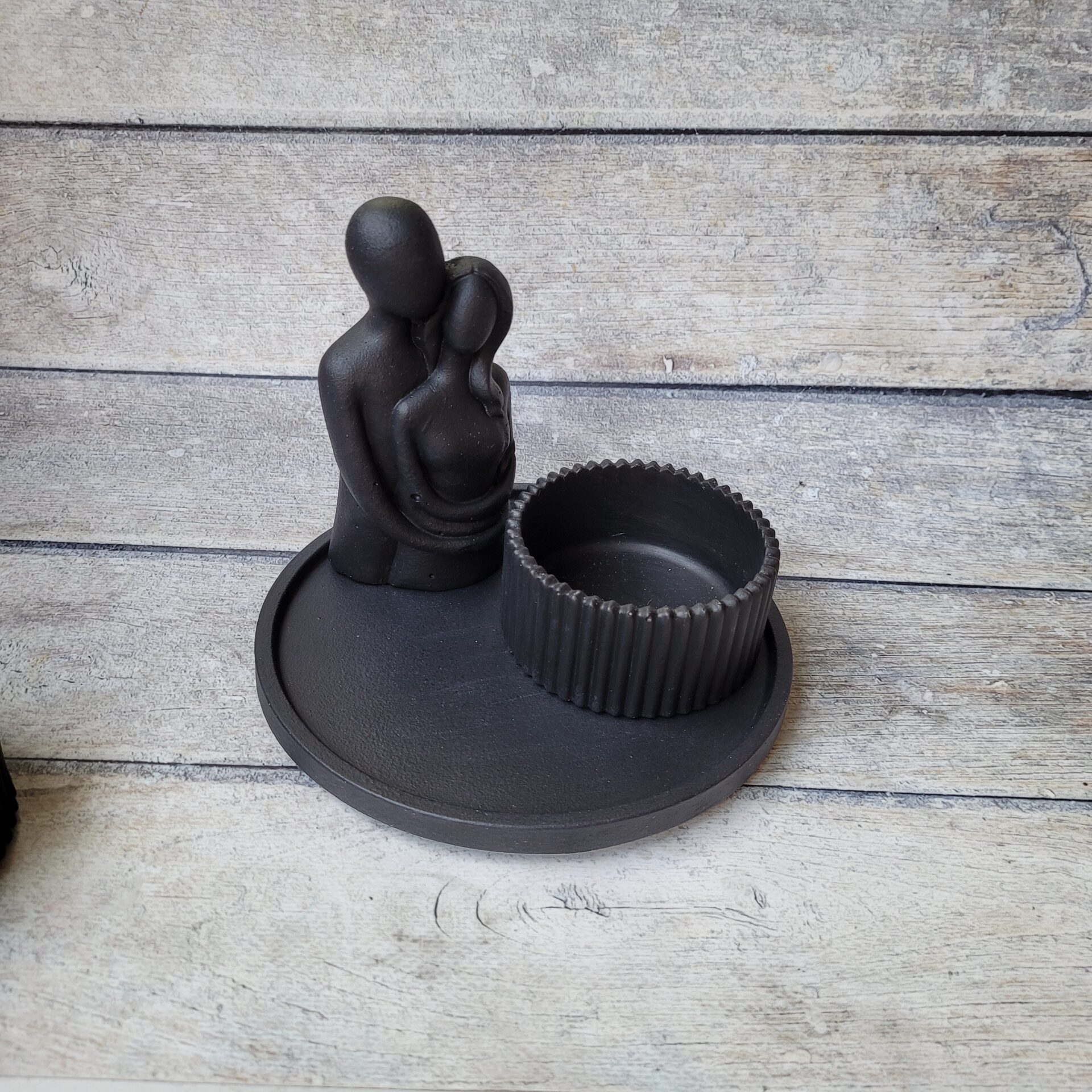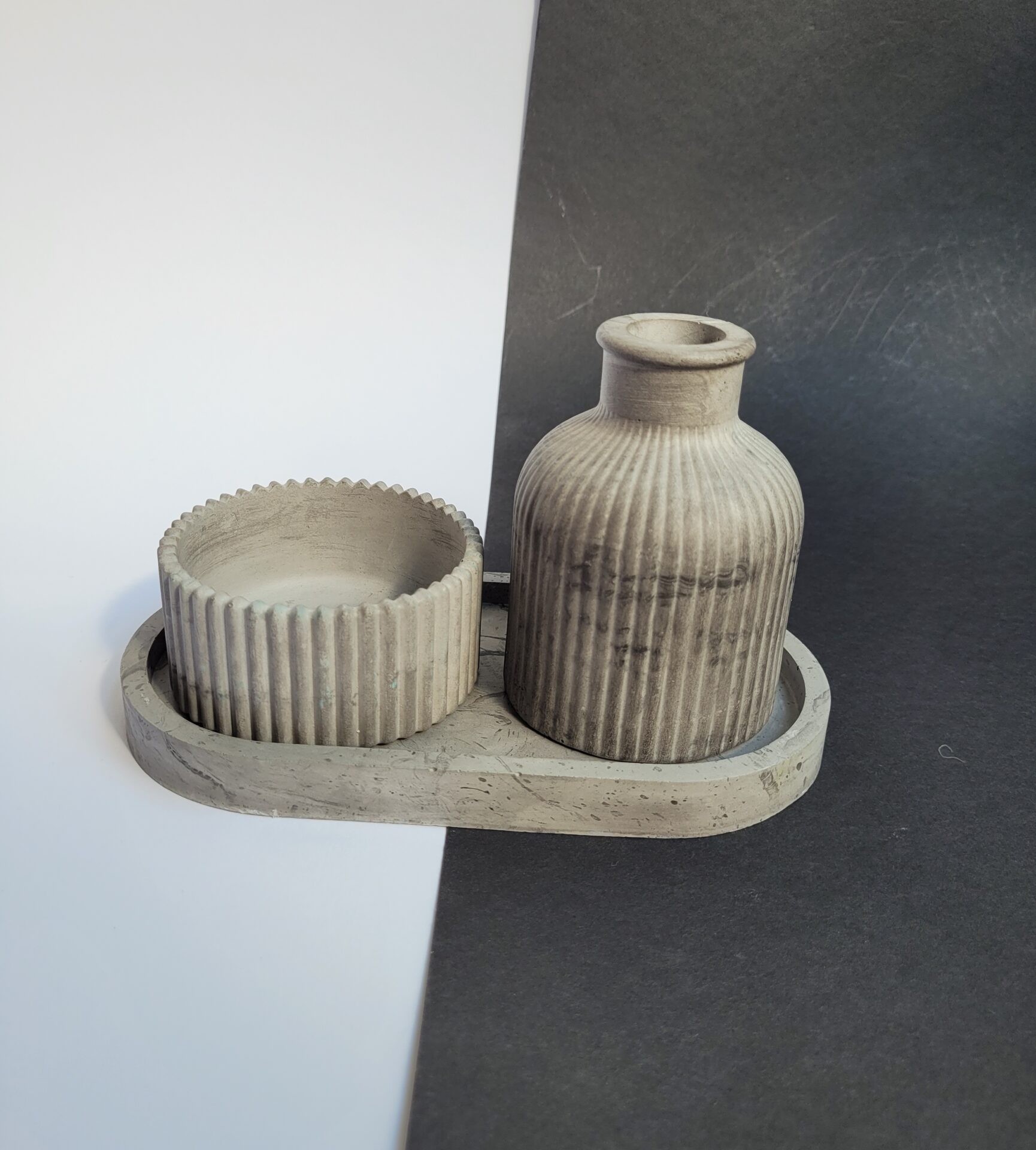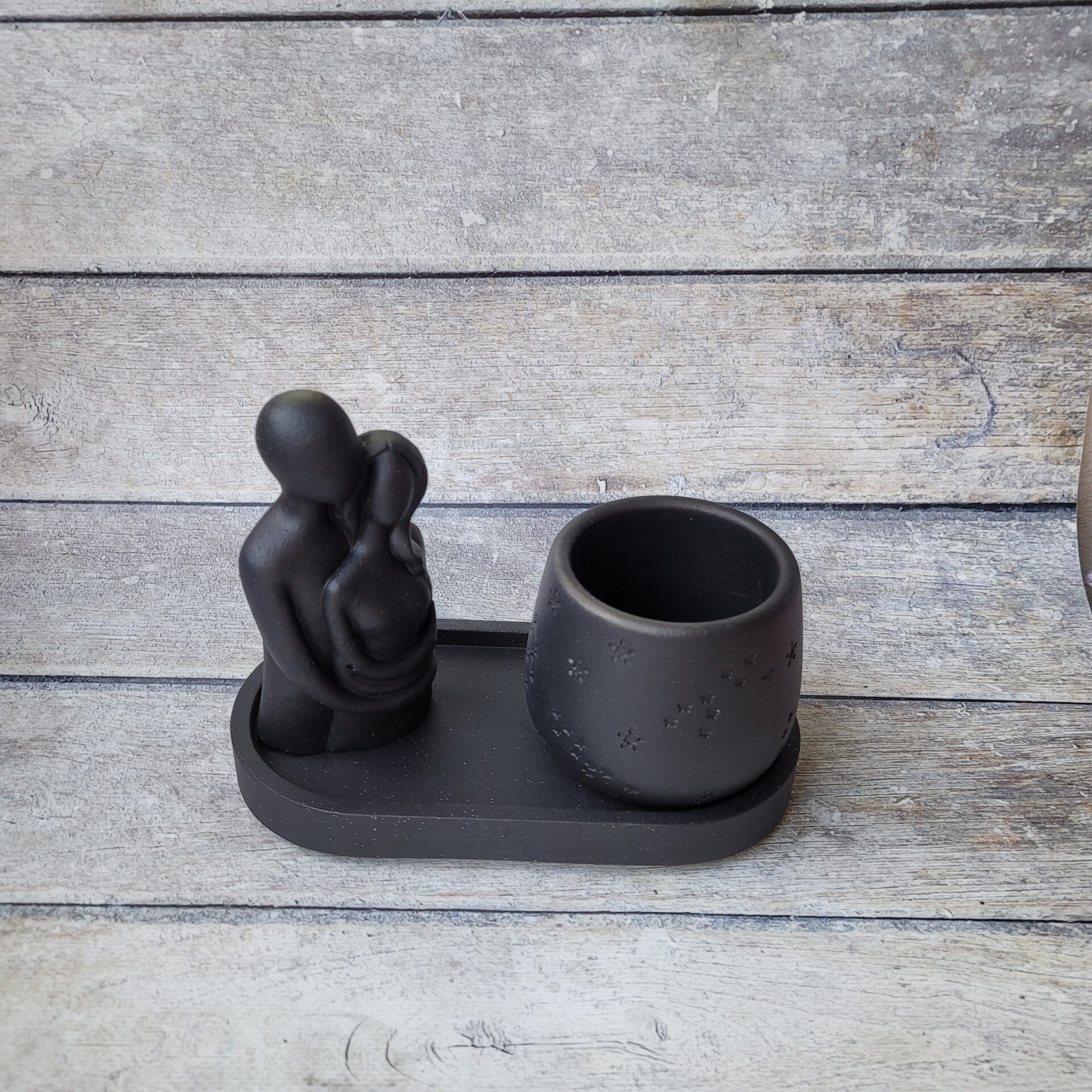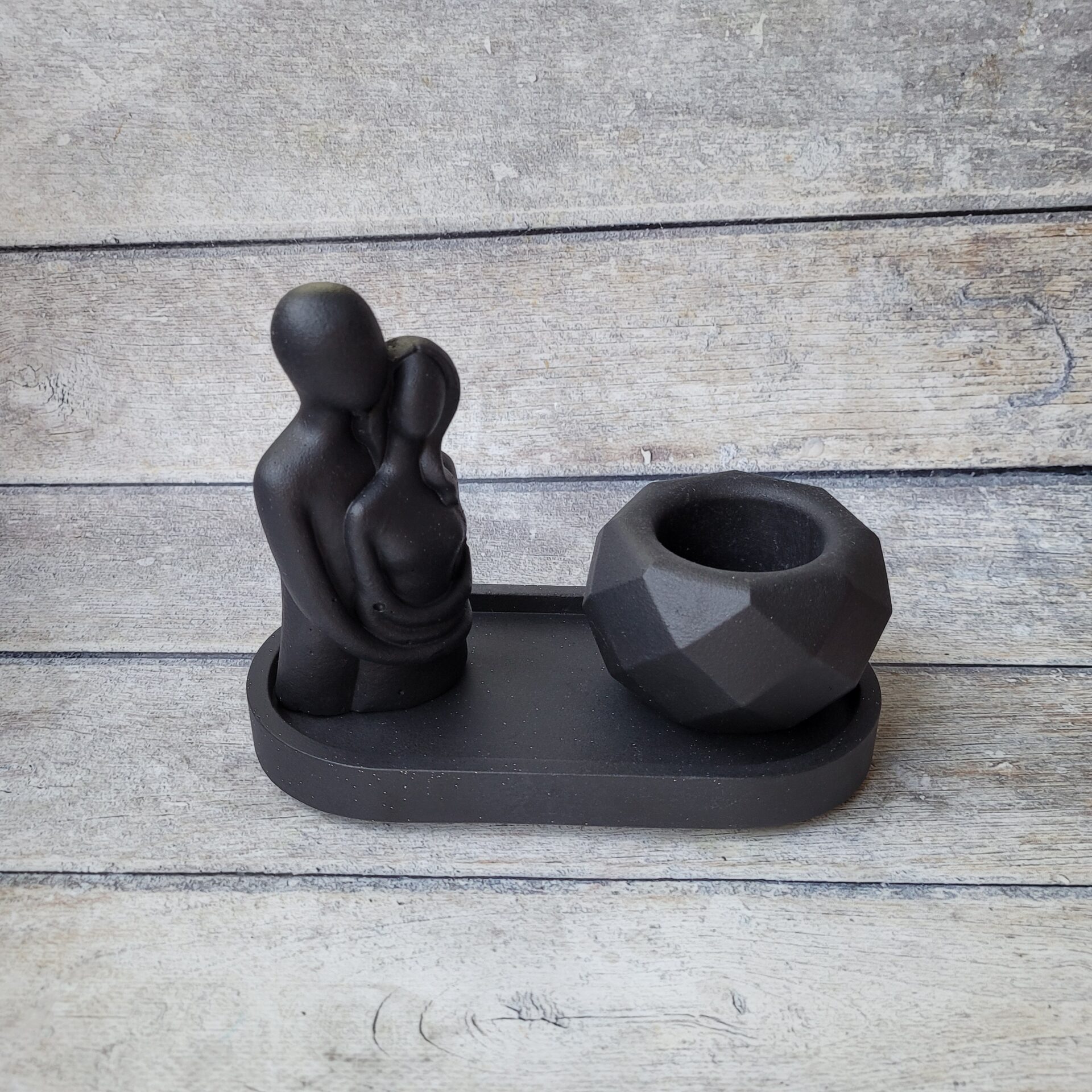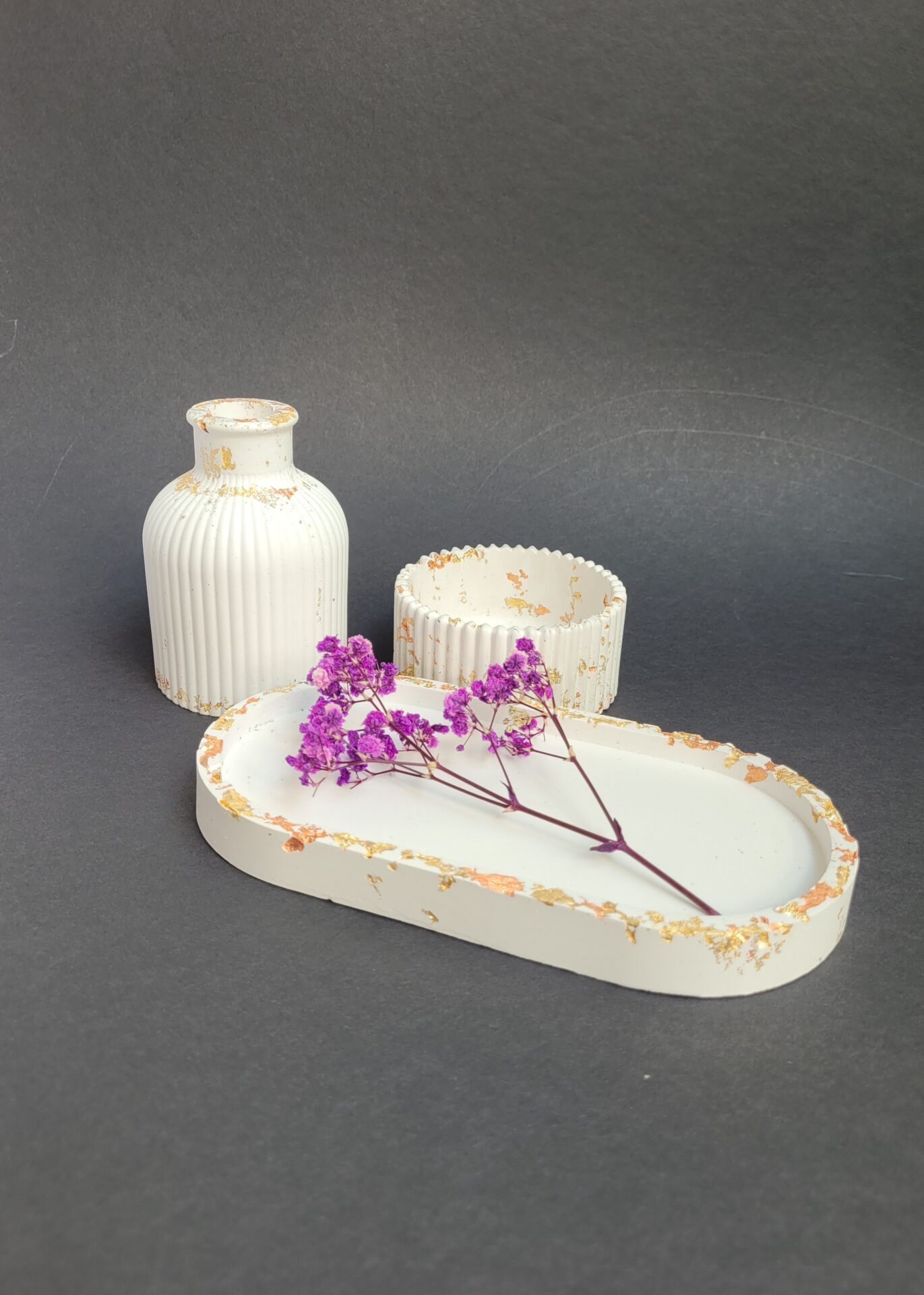Odkryj wyjątkowy zestaw dekoracyjny stworzony ręcznie z gipsu polimerowego, który doda Twojemu wnętrzu elegancji i charakteru. Ten niepowtarzalny komplet w głębokim, czarnym kolorze składa się z owalnej podstawki, wazonika oraz uniwersalnej osłonki, która może pełnić funkcję stylowej świeczki lub eleganckiego pojemnika na biżuterię. Idealny na prezent lub jako wyjątkowy element dekoracyjny w Twoim domu. Każdy element został starannie wykonany z dbałością o detale, aby wprowadzić do Twojej przestrzeni odrobinę luksusu i nowoczesnego designu. Dodaj do koszyka już teraz i stwórz niepowtarzalną atmosferę w swoim wnętrzu!