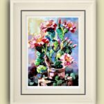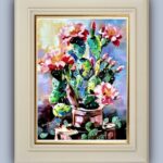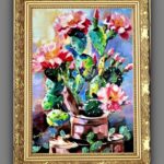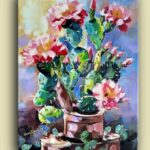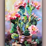 Przedmiotem sprzedaży jest obraz ” Zielony samotnik” stoi godnie w milczeniu. Malowany techniką: podłoże pod technikę olejną akrylowe – olejną na płótnie malarskim. Rok powstania obrazu 2024 Wymiary obrazu 30 cm x 41 cm bez ramy, ale ma zamalowane boki w kolorze tła płótna (obrazu) co wskazuje, że dzieło można zawieść na ścianie nawet bez ram. Zawieszony obraz na ścianie bez ram,nie traci na swoim pięknym wyglądzie. Obraz ” Zielony samotnik” jest zabezpieczony werniksem co oznacza jego długa żywotność i nie zniszczalność farb i kolorów. Wykonanie dzieła jest Teresa Kopańska artysta – malarz. Z przodu obrazu jest sygnatura malarki, również na odwrocie płótna. Serdecznie zapraszam do zakupu tego pięknego, kwiecistego kaktusa, który charakteryzuje się pięknym różowym kwiatem, któremu zazdrości nawet róża. Obraz przedstawiony jest do wglądu w wirtualnych ramach.