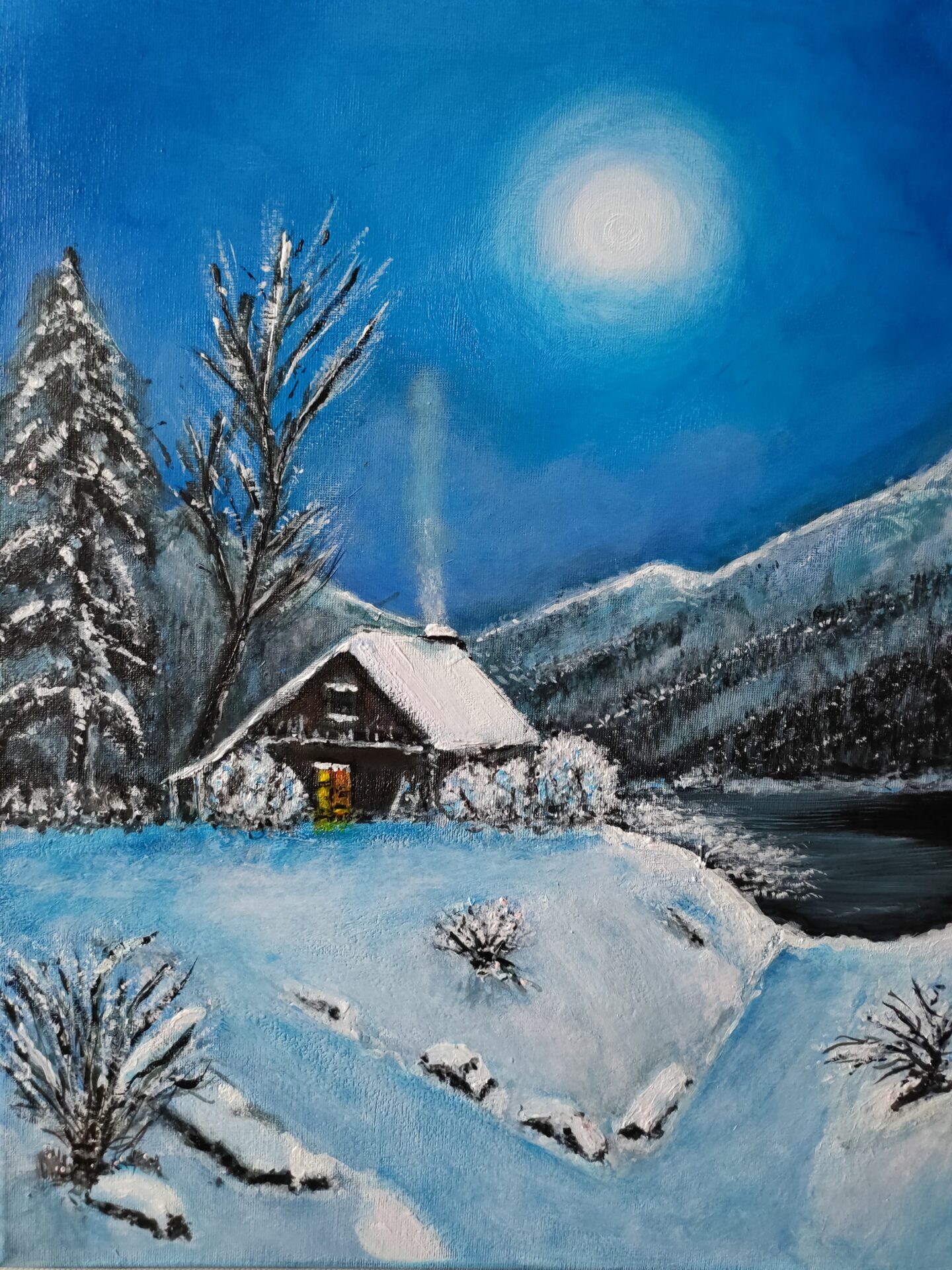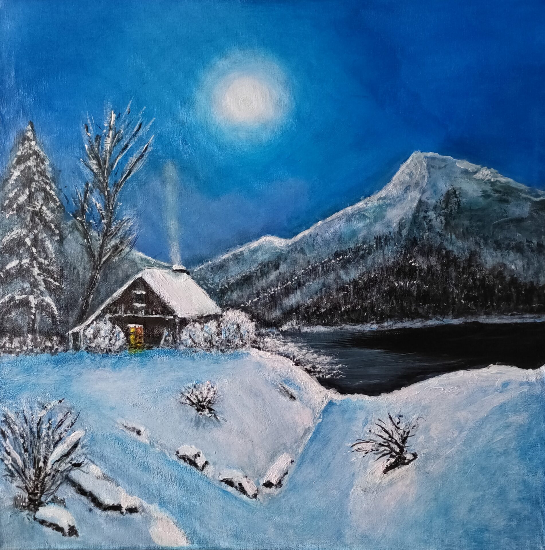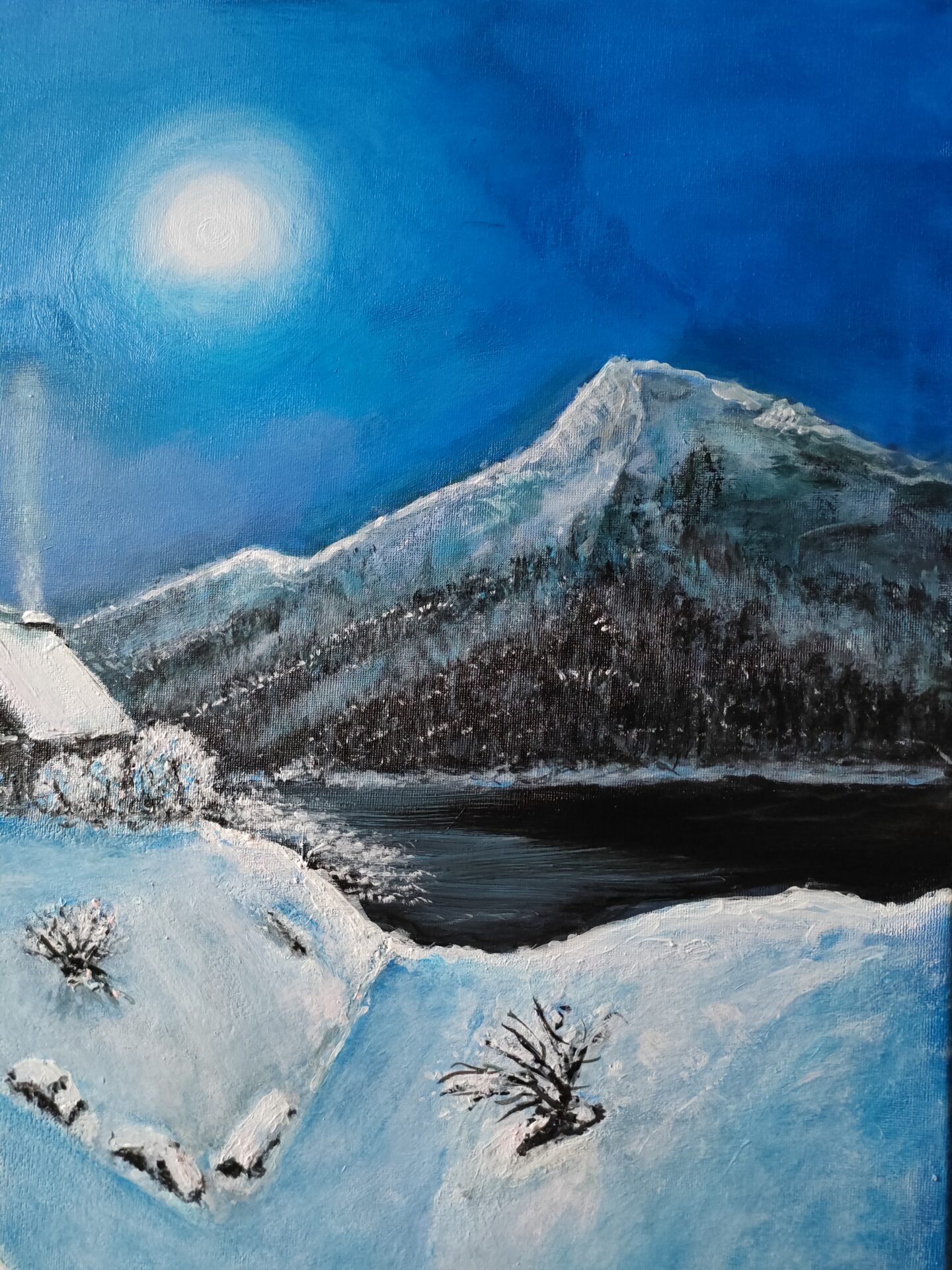 Witam,obraz namalowany farbami akrylowymi na podobraziu malarskim zabezpieczony podwójną warstwą lakieru, boki obrazu tworzą całość.
