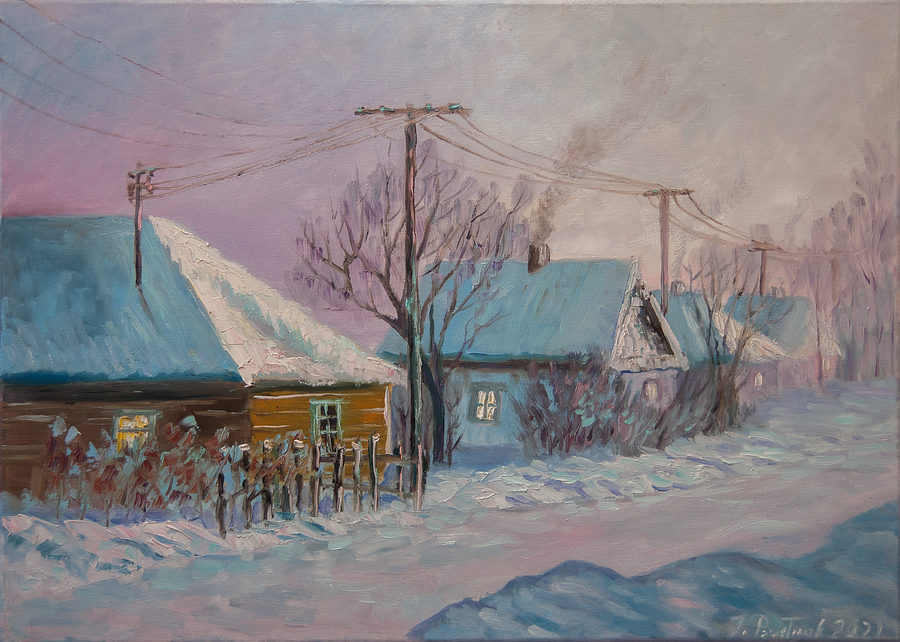 Obraz olejny na podobraziu płóciennym w technice alla prima z widoczną fakturą farby