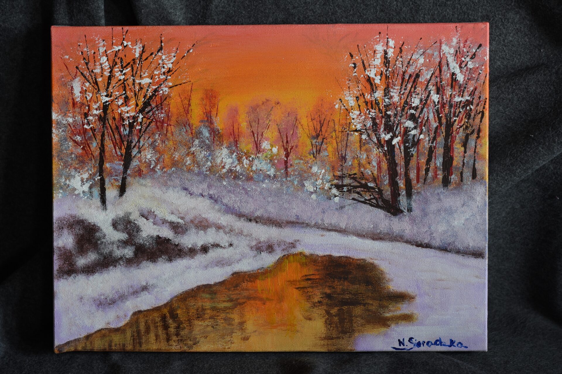 Obraz namalowany na płótnie malarskim,techniką akrylową.