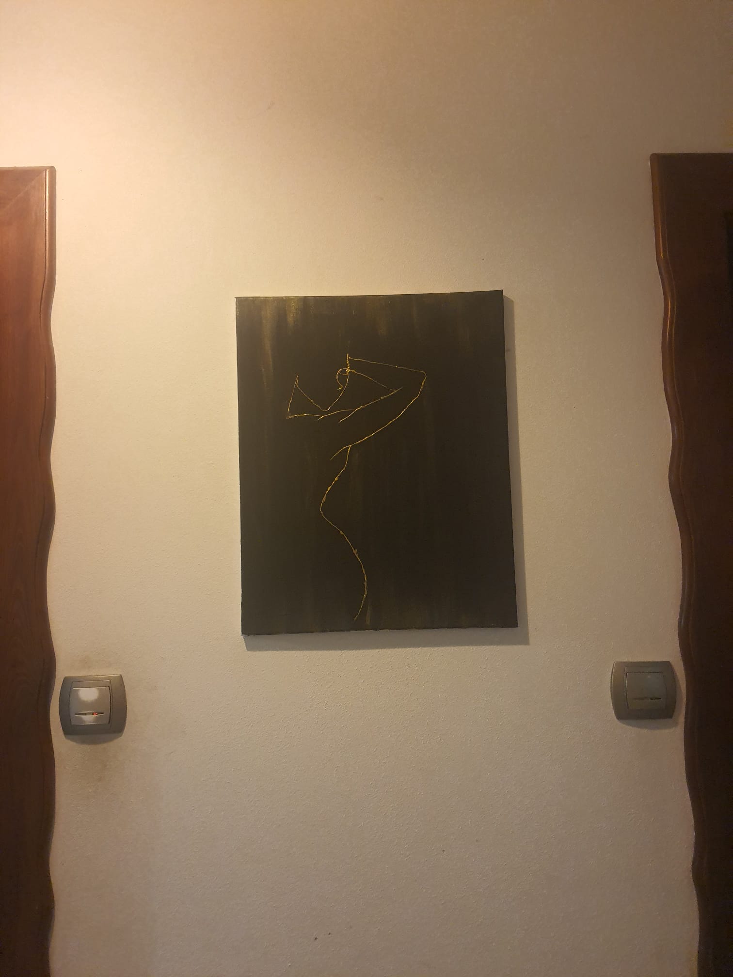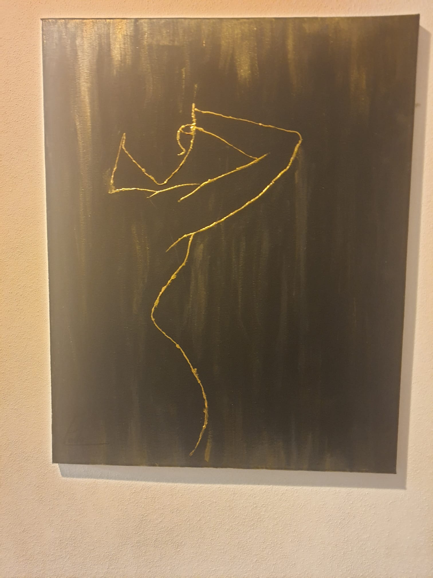 Obraz malowany farbami akrylowymi poza złotymi elementami, zabezpieczony varnishem
