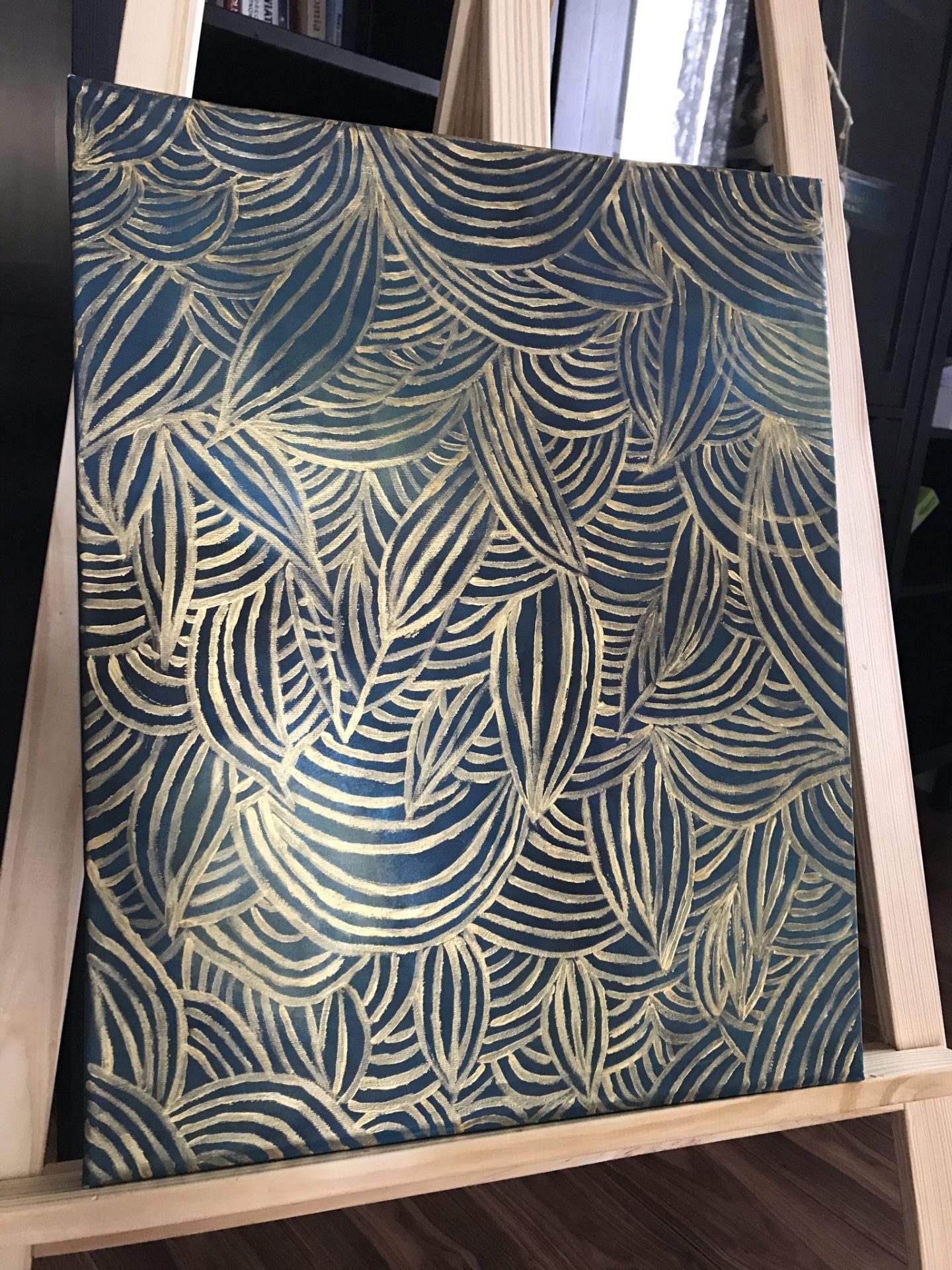 Obraz abstrakcyjny. Malunek wykonany na płótnie o wym. 40×50 farbami akrylowymi. Obraz zabezpieczono werniksem.