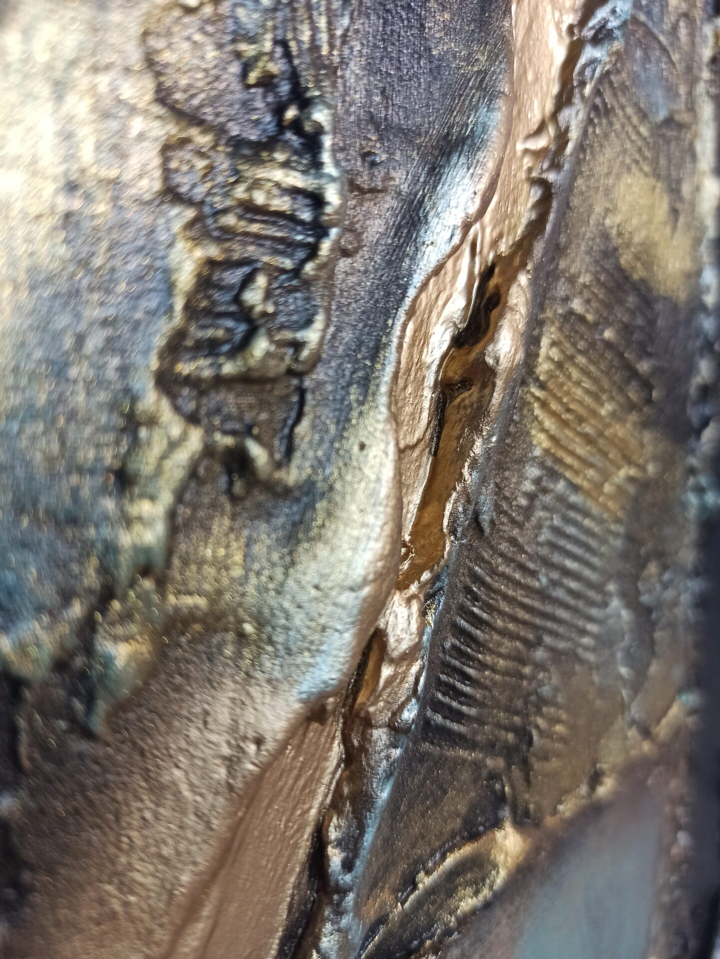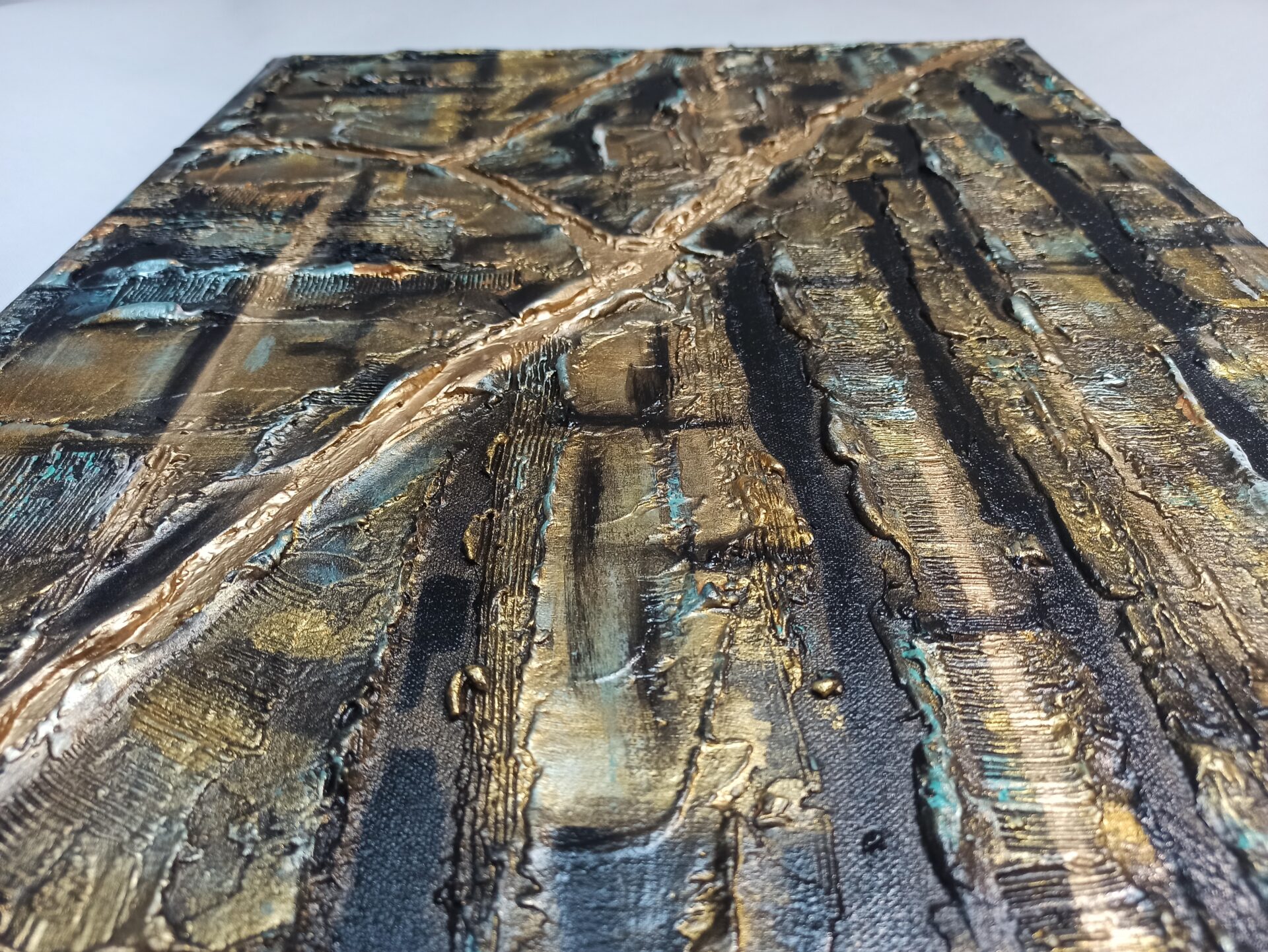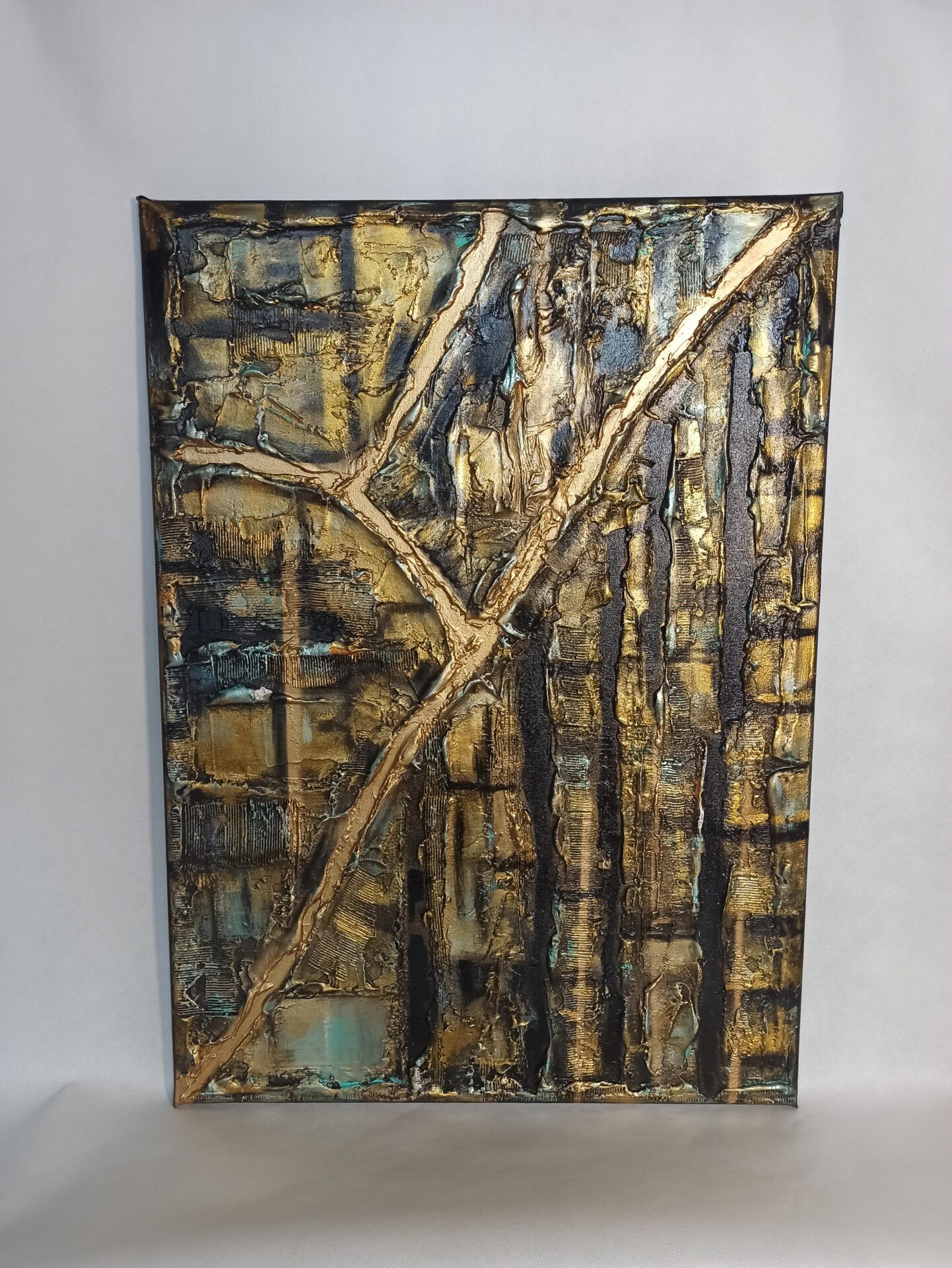 Obraz strukturalny na podobraziu malarskim,namalowany farbami akrylowymi ,zabezpieczony podwójną warstwą lakieru.Wymiary 50/70, technika własna, boki obrazu zamalowane.