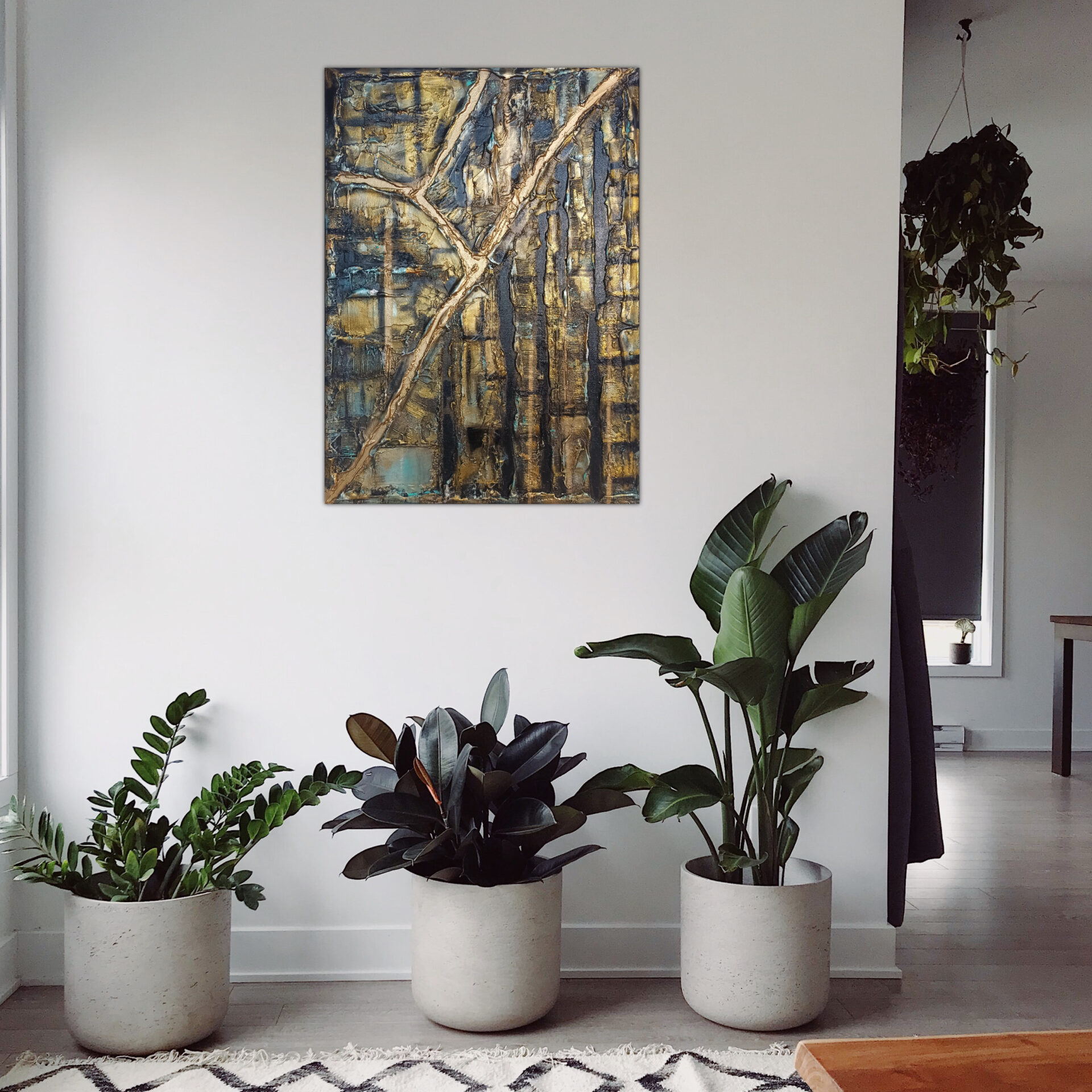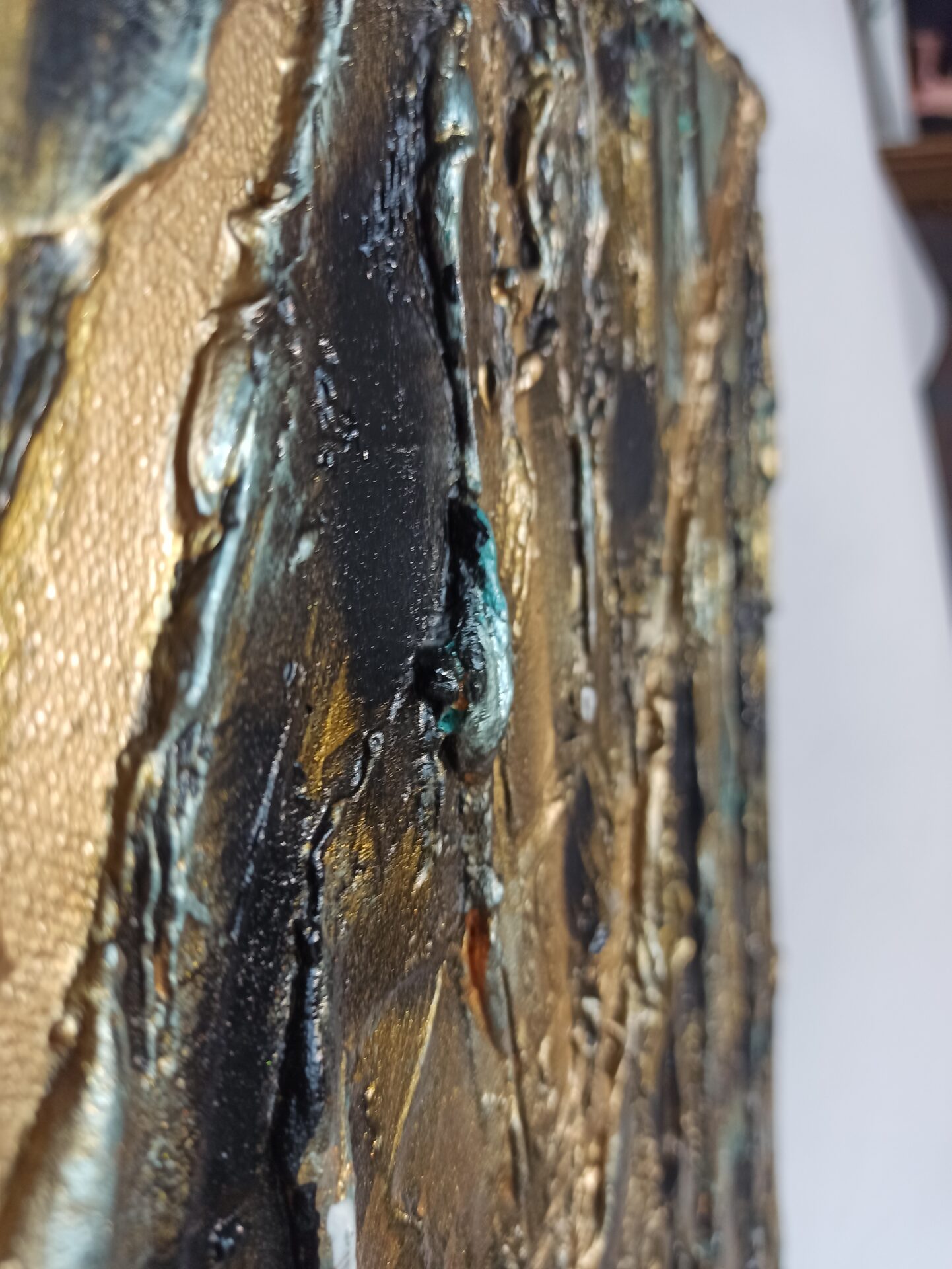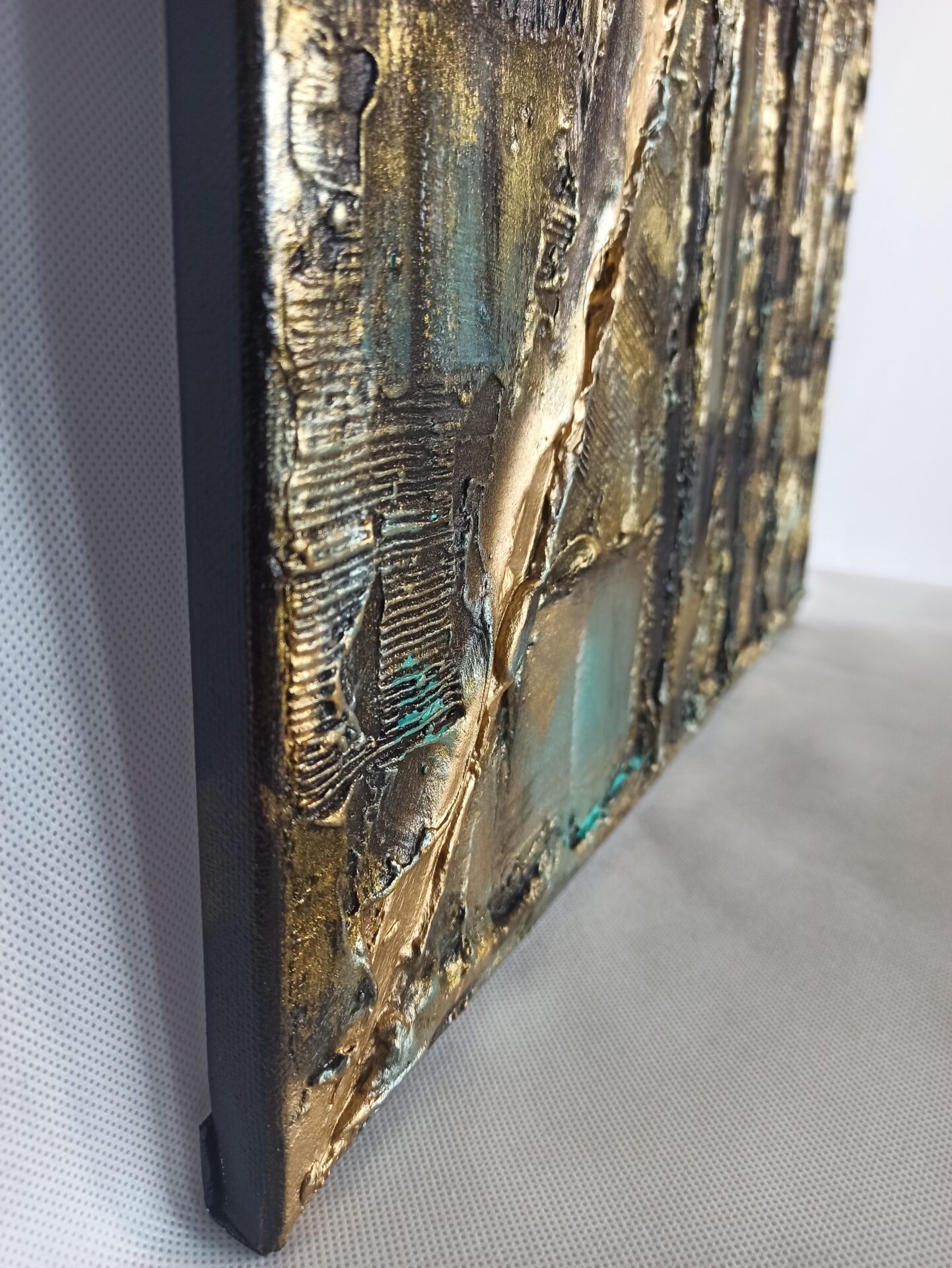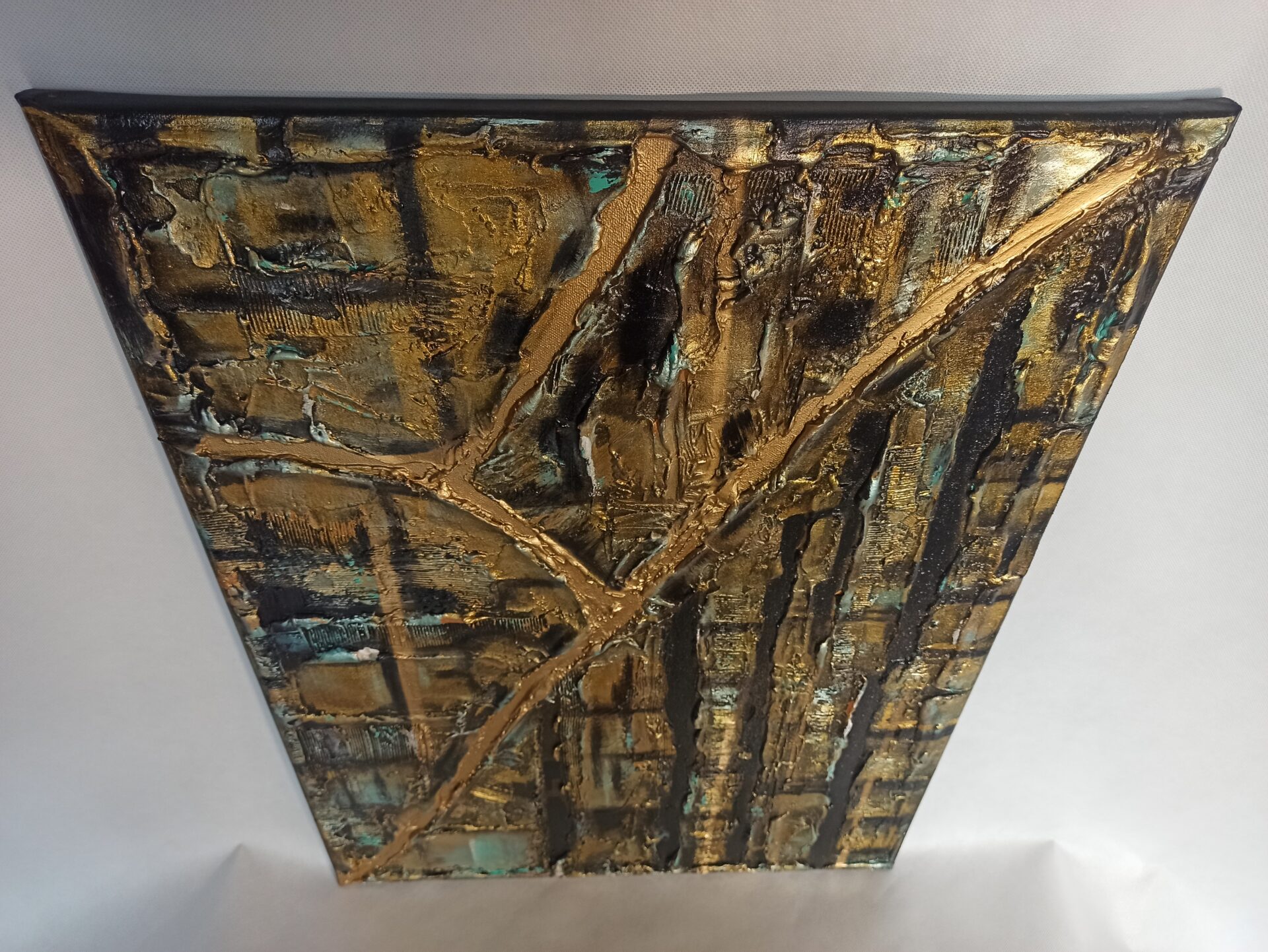 Obraz strukturalny na podobraziu malarskim,namalowany farbami akrylowymi ,zabezpieczony podwójną warstwą lakieru.Wymiary 50/70, technika własna, boki obrazu zamalowane.