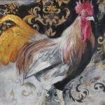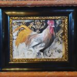 Mały obrazek w dużej ramie:) akryl/transfer/złotko na płótnie, obrazek 24×30 oprawiony w dużą, starą z niemieckiego targu staroci ramę: rama z widocznymi śladami zużycia, przeze mnie tylko umyta i zabezpieczona metalowymi narożnikami: dla miłośników kogutów i starych ram 😉