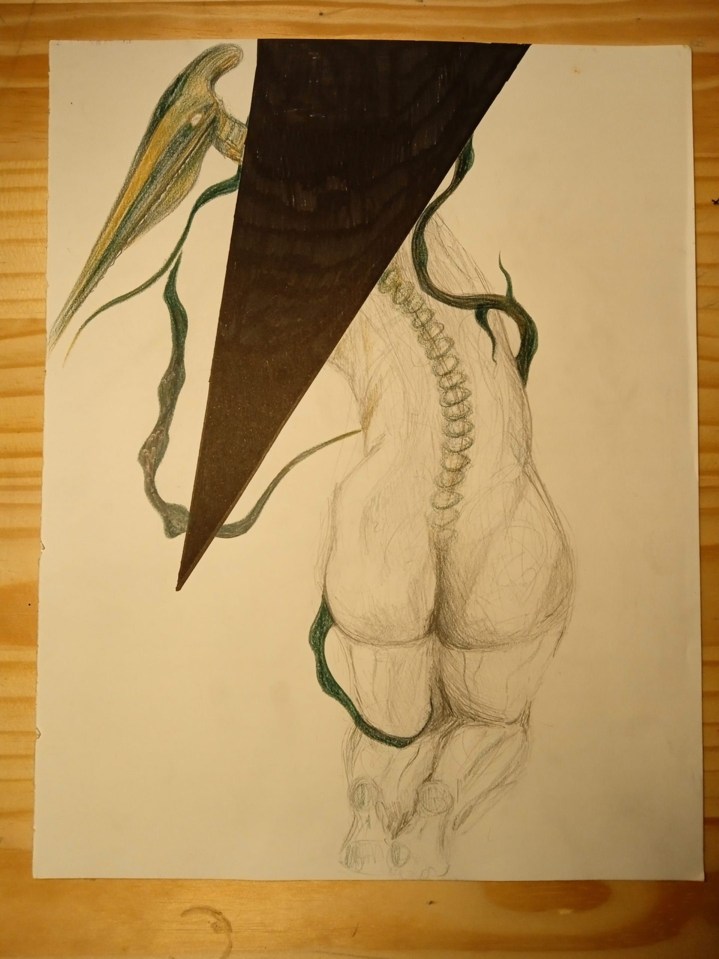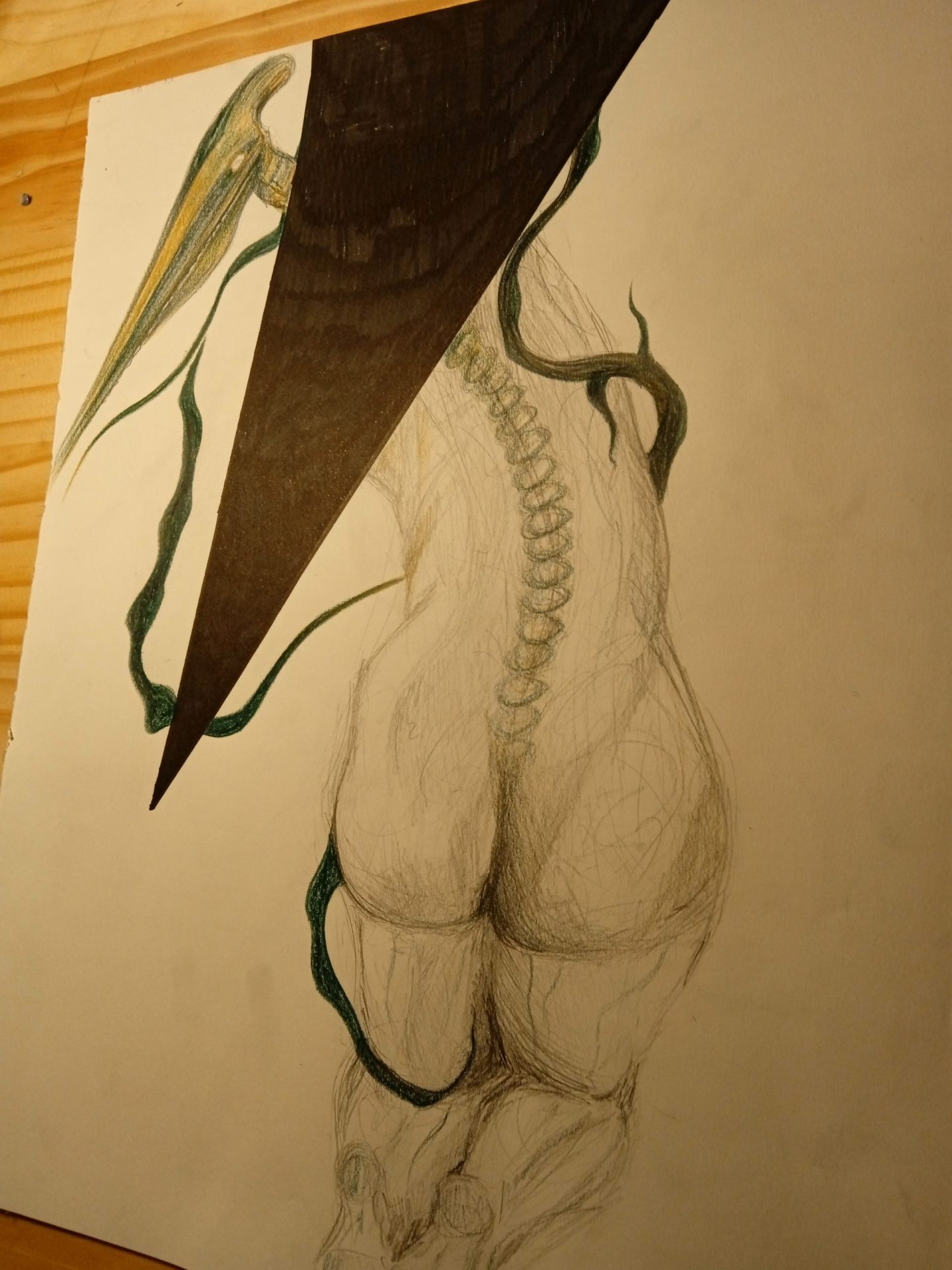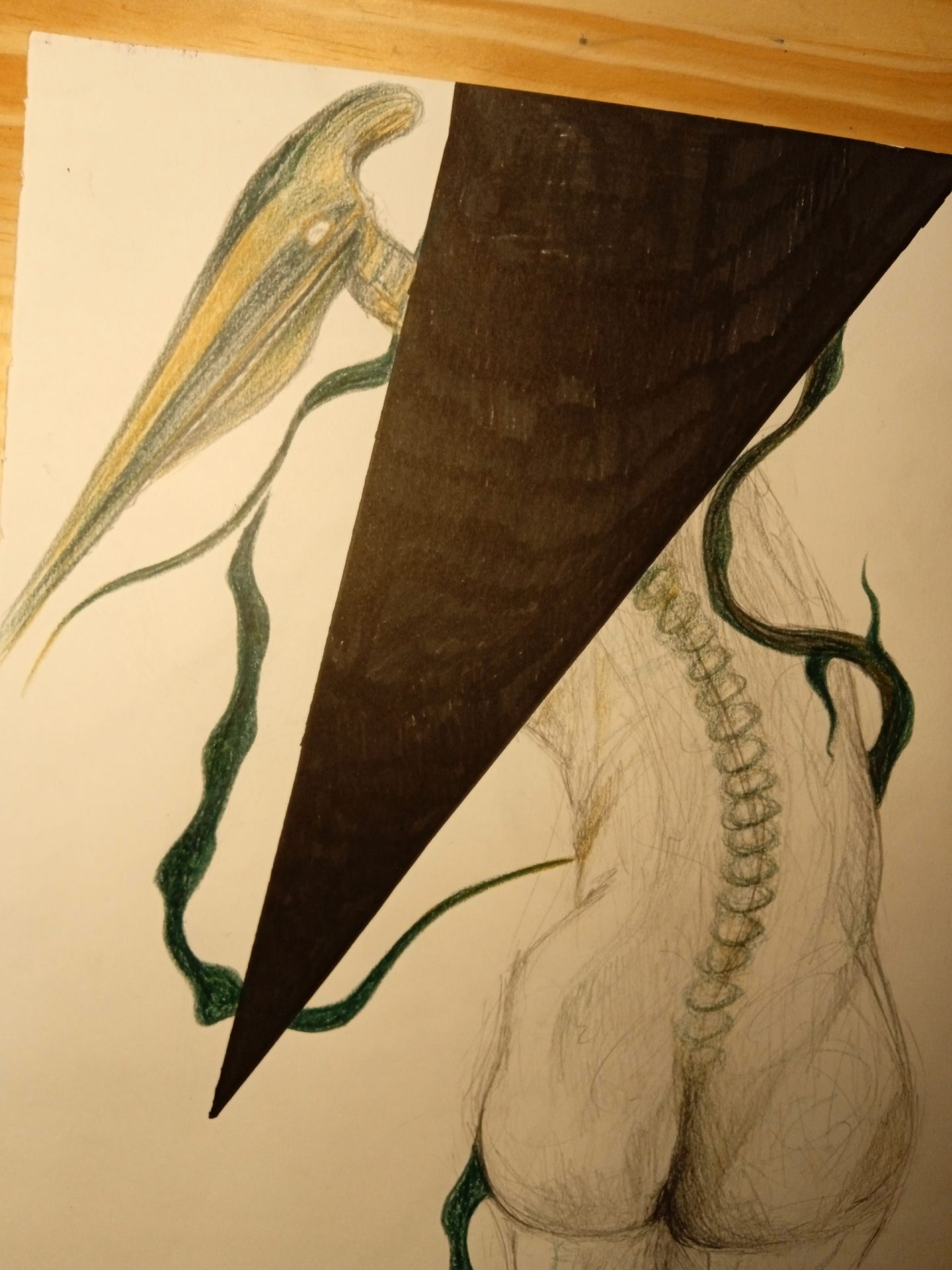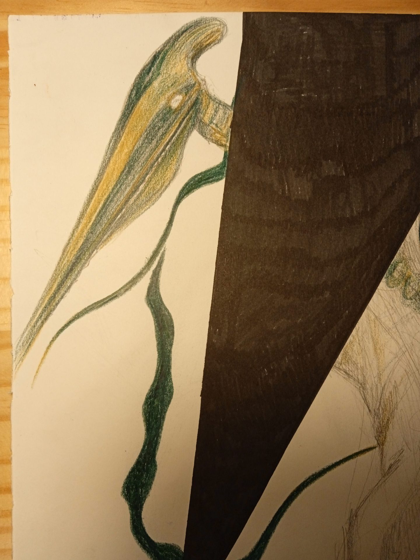 Brak usztywnienia, połączenie czerni z kolorem kredki
