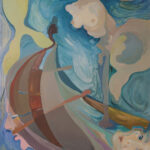 Obraz powstał po plenerze w Wilkasach w roku 2008. Utrzymany w malarskim działaniu powietrza, wody i kobiecych ciał. Inspiracja to mazurskie syreny i łodzie Wikingów. Interpretacja wyobraźni, nastroju i emocji. Tajemnica i zniewalające zagrożenie ze strony silnego pierwiastka żeńskiego.