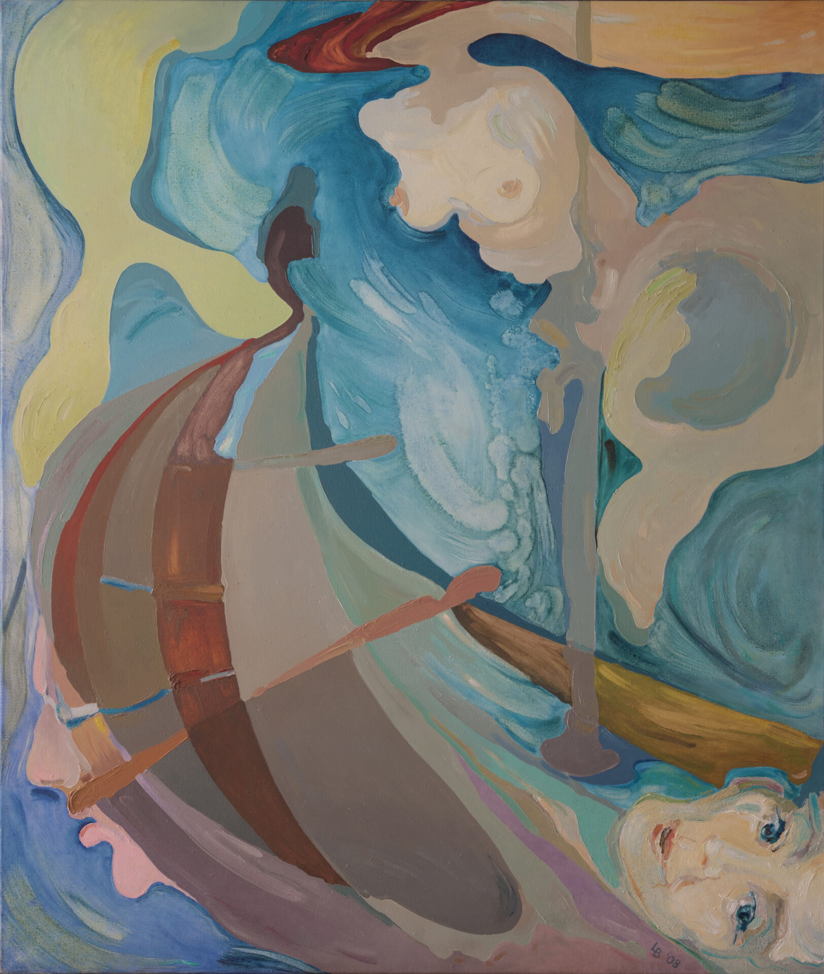 Obraz powstał po plenerze w Wilkasach w roku 2008. Utrzymany w malarskim działaniu powietrza, wody i kobiecych ciał. Inspiracja to mazurskie syreny i łodzie Wikingów. Interpretacja wyobraźni, nastroju i emocji. Tajemnica i zniewalające zagrożenie ze strony silnego pierwiastka żeńskiego.