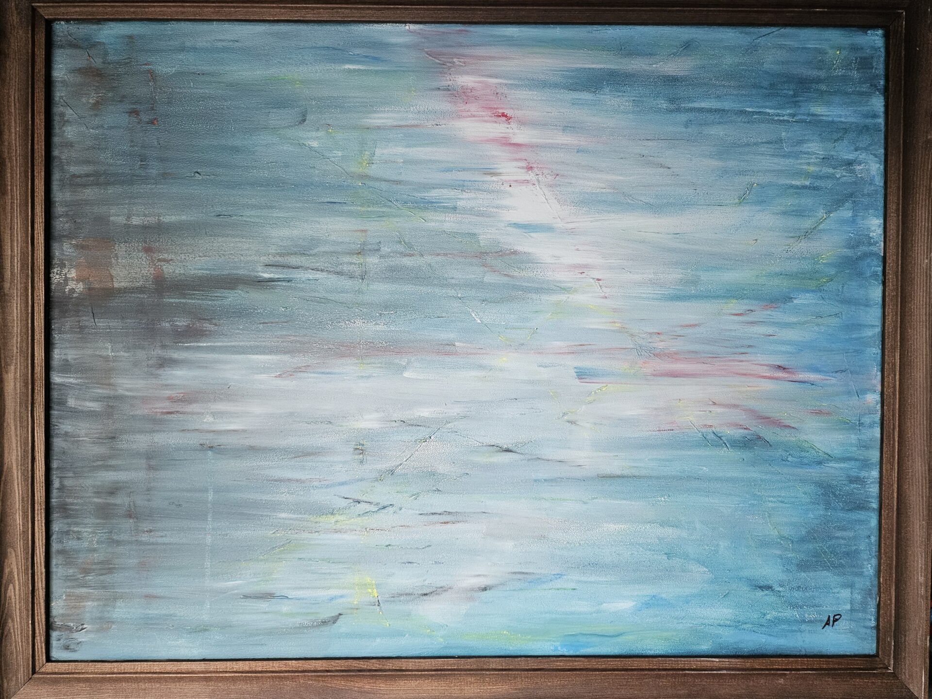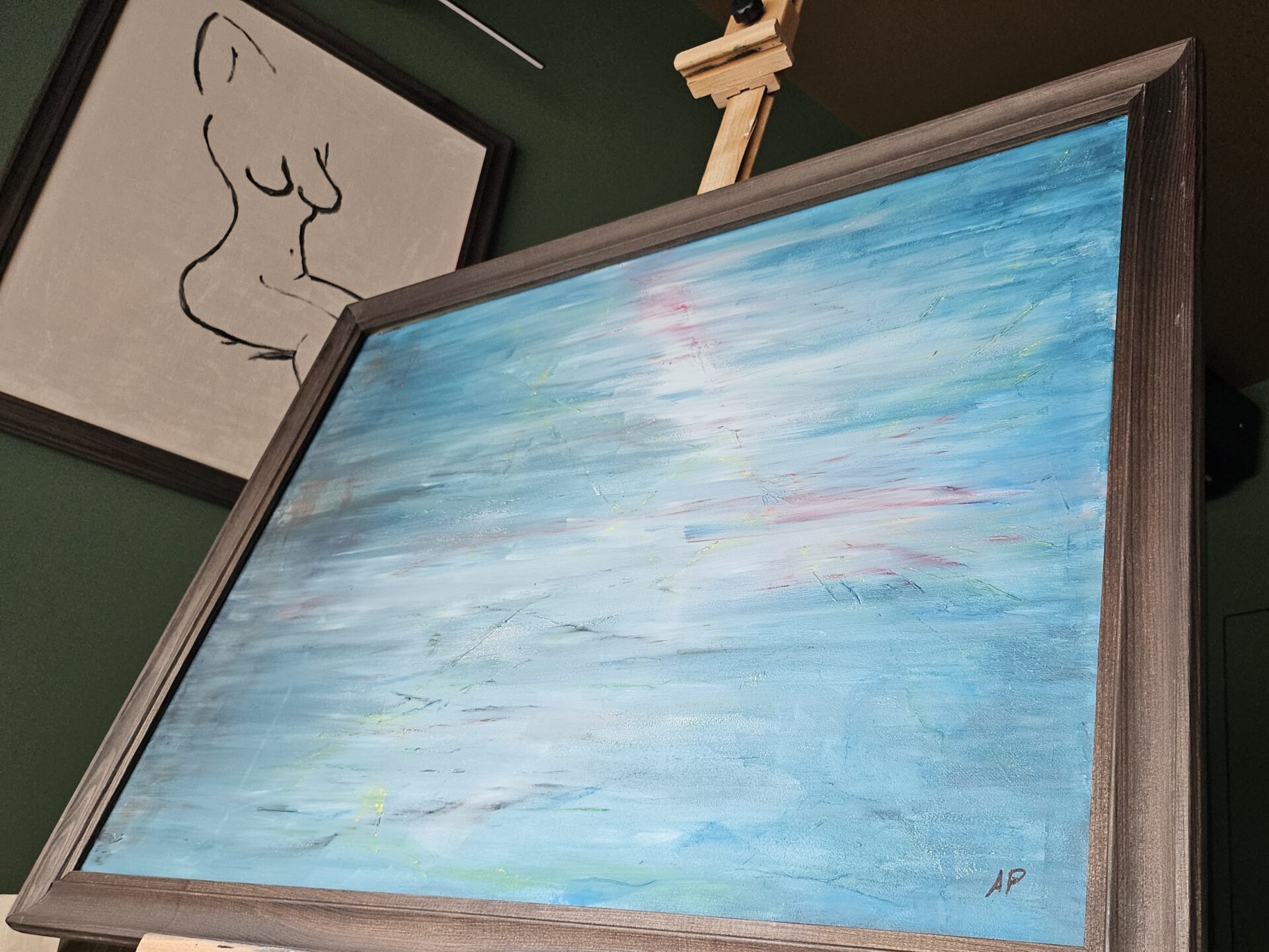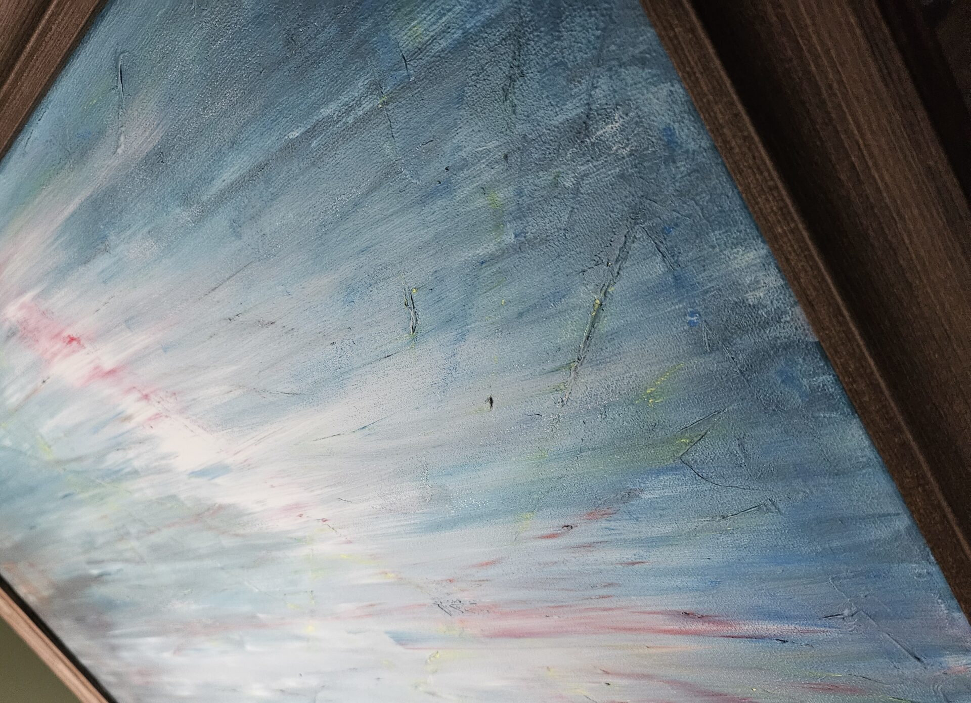 Obraz wykonany techniką mieszaną (olej, akryl, lateks) na płótnie, 80×60