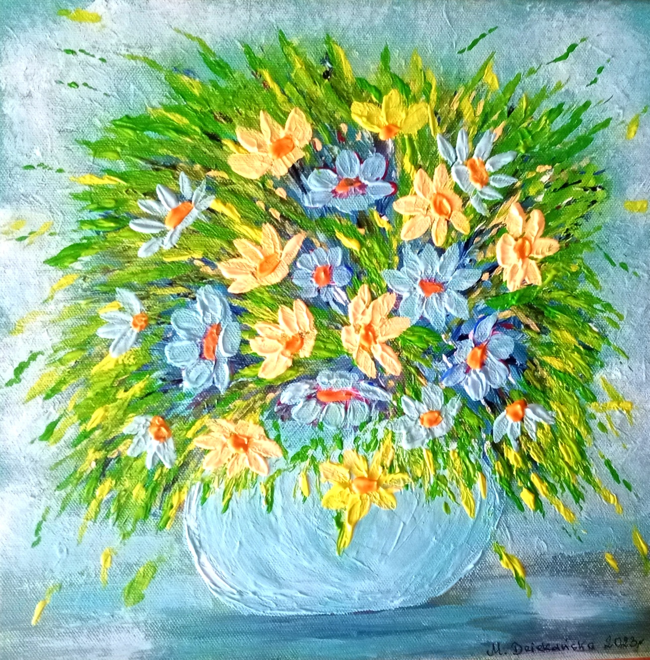 Obraz namalowany na profesjonalnym podobraziu . Płótno nabite na sosnowe krosno. Podobrazie posiada kołki rozporowe. Gramatura płótna 380 gr/m2.Użyte zostały wysokiej jakości farby akrylowe.Wymiary 30 x 30.Do pracy dołączam certyfikat. Jest to moja pracaObraz jest sygnowany i zawerniksowany.Boki zamalowane w tonacji obrazu.