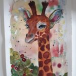 Żyrafa. Akwarela na bawełnianym papierze o gramaturze 300 g. Format A3 . Obszar pracy 38 x 26 cm. Idealna do pokoju dziecka. Koszt wysyłki ok. 20 zł ( kurier lub paczkomat)
