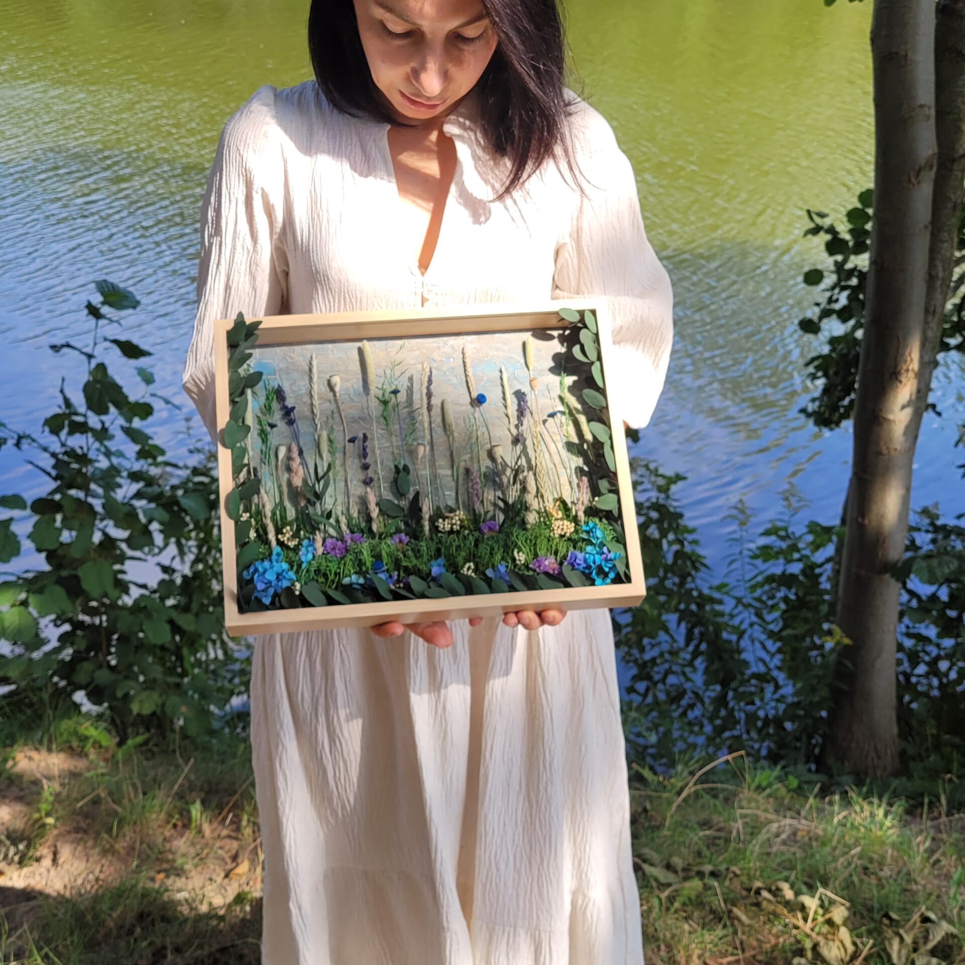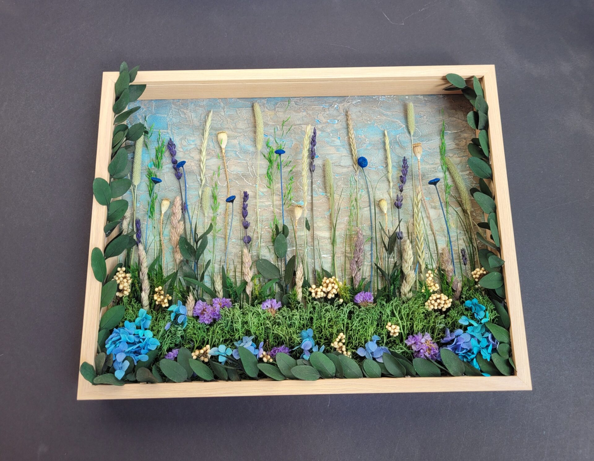 Stworzony własnoręcznie żywy obraz łączy w sobie siłę i piękno roślin stabilizowanych i suszonych, które harmonijnie splatają się, tworząc unikalną kompozycję. Tło obrazu wykonane jest w starannie dobranej kolorystyce, idealnie pasującej do głównych elementów. Ta praca to nie tylko ozdoba, ale cały świat wypełniony naturalną harmonią i spokojem, który wnosi do każdego domu odrobinę żywej natury.