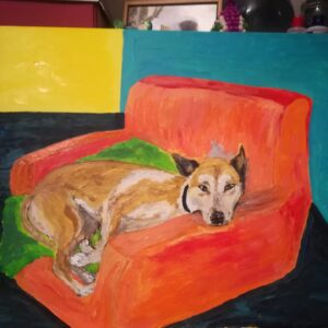 Pies który ma zakaz wchodzenia na fotel