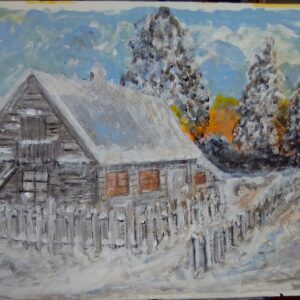 Chata wiejska zimą