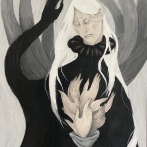 Stolik kawowy z flakonem, stolik pomocniczy, orzech amerykański