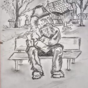 Mężczyzna z fajką i patykiem